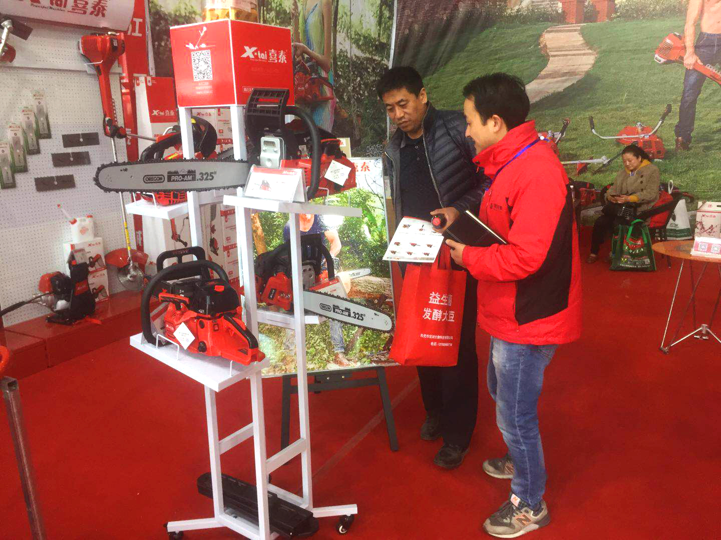 在分會(huì)場(chǎng)的體驗(yàn)區(qū),“喜泰”的各類(lèi)油鋸:入門(mén)級(jí)產(chǎn)品XTCS 5858,專(zhuān)業(yè)伐木利器XTCS 5820,既省油又流線感極強(qiáng)的XTCS 493,還有最新推出適合山東市場(chǎng)的大功率油鋸XTCS 598,排列整齊,等待著好奇的圍觀人群感受小型發(fā)動(dòng)機(jī)的“推背感”。